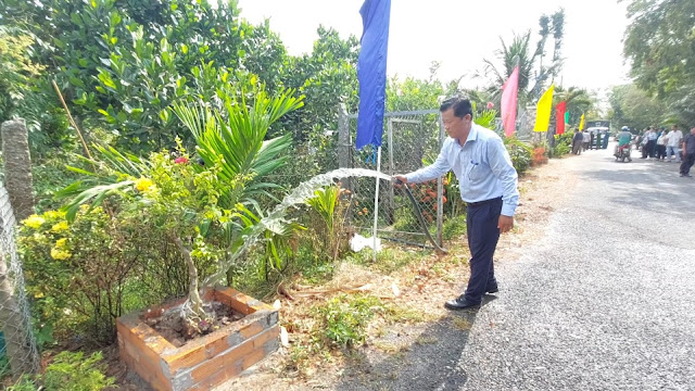 Sau buổi lễ, các đại biểu cùng nhân dân xã Phong Mỹ tiến hành trồng cây hoa giấy trên tuyến đường ấp 5.